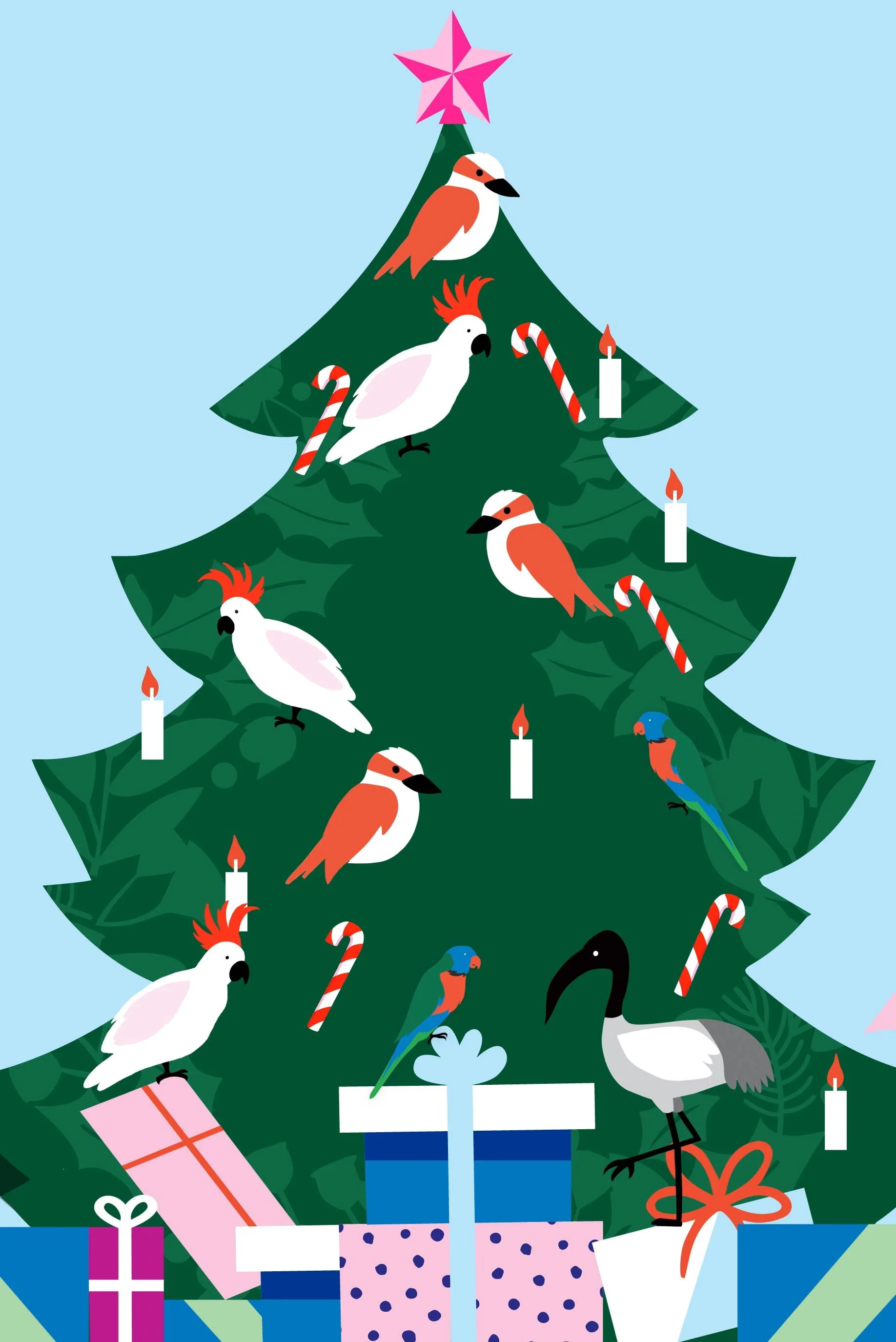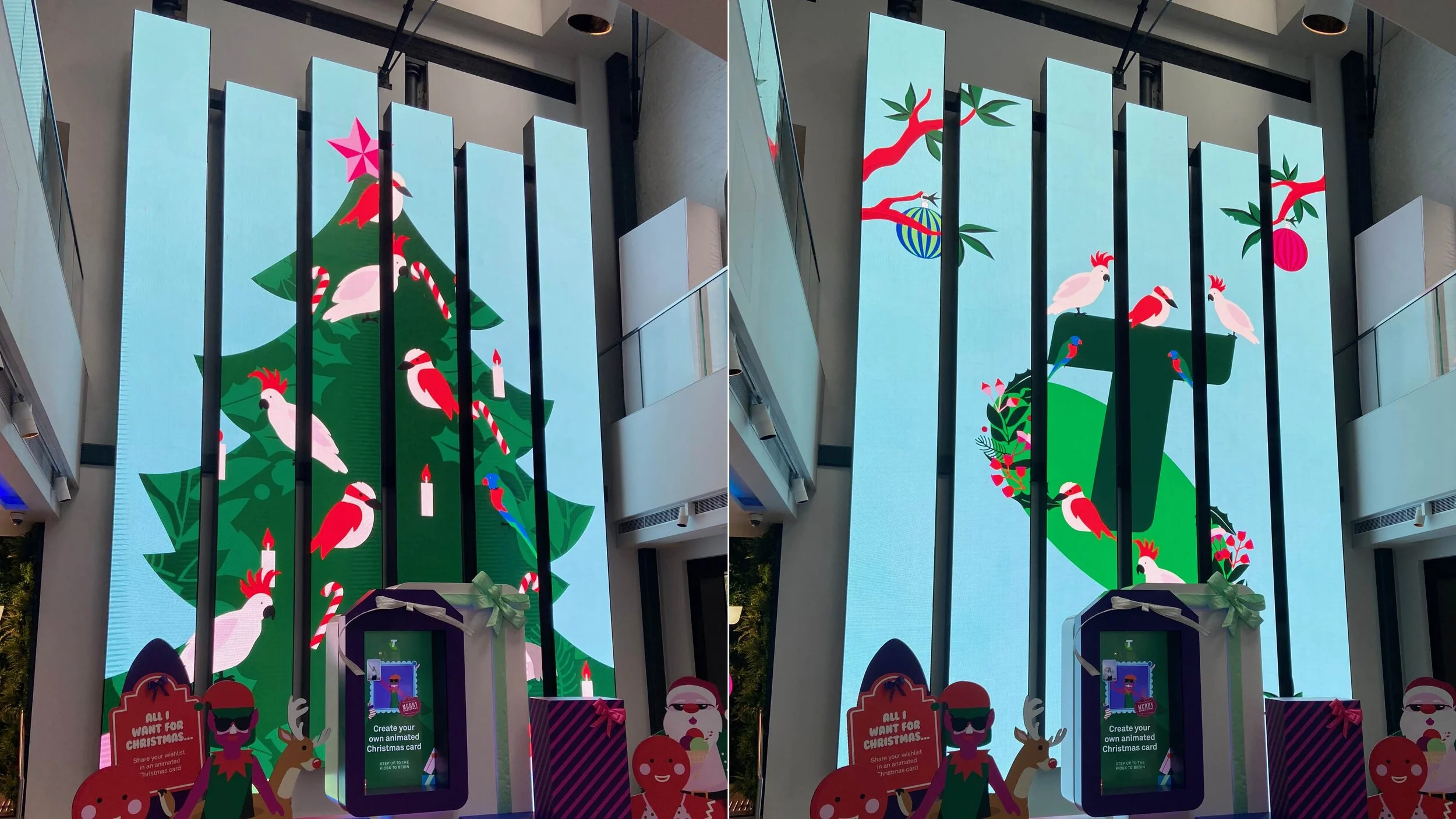 Hand drawn and painted in Photoshop then put together in After Effects. The final animation was projected in the Telstra Store over Christmas.
